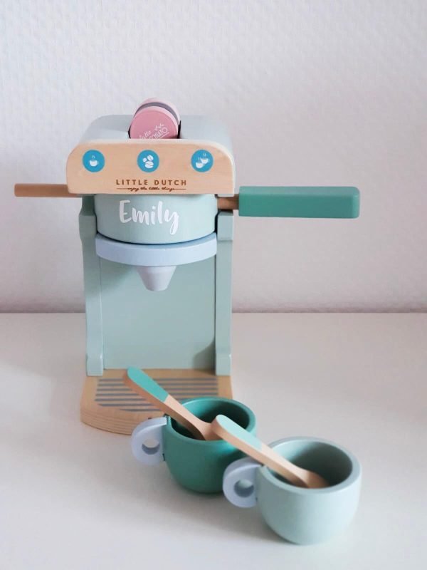 Children love to do grown-up things, such as making a nice cup of coffee. The Little Dutch wooden coffee machine is available in mint and includes two cups, two spoons and five flavours of coffee cups in nice colours: lungo, cappuccino, latte macchiato, coffee and espresso. The set fits perfectly with the Little Dutch wooden toy kitchen and is very nice to combine with the Little Dutch wooden toaster set.