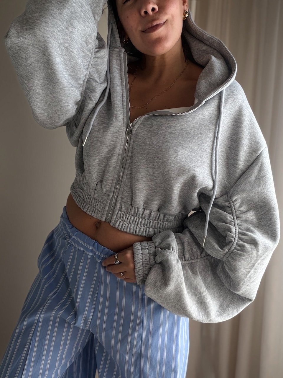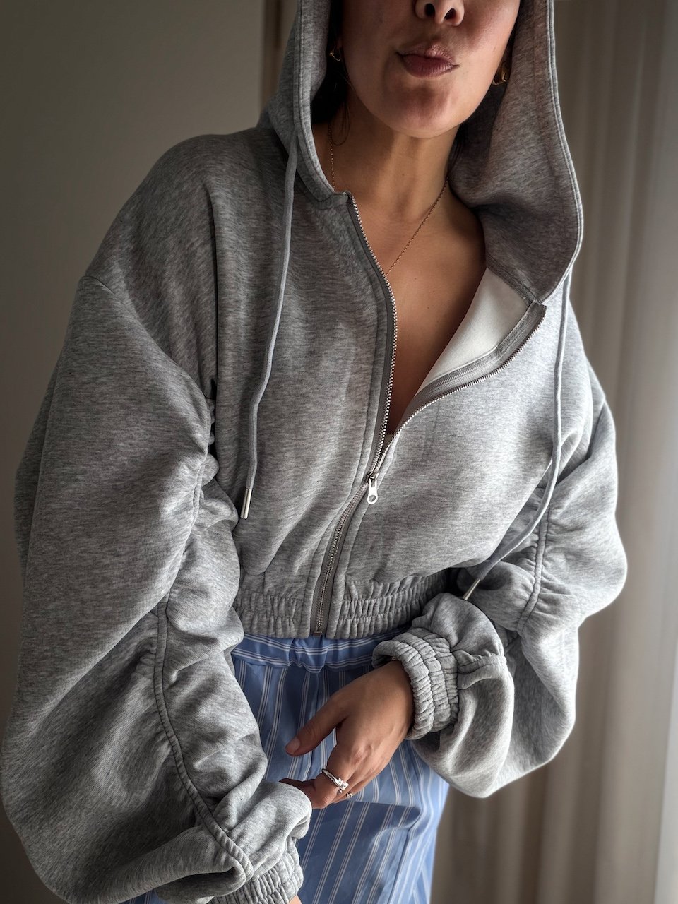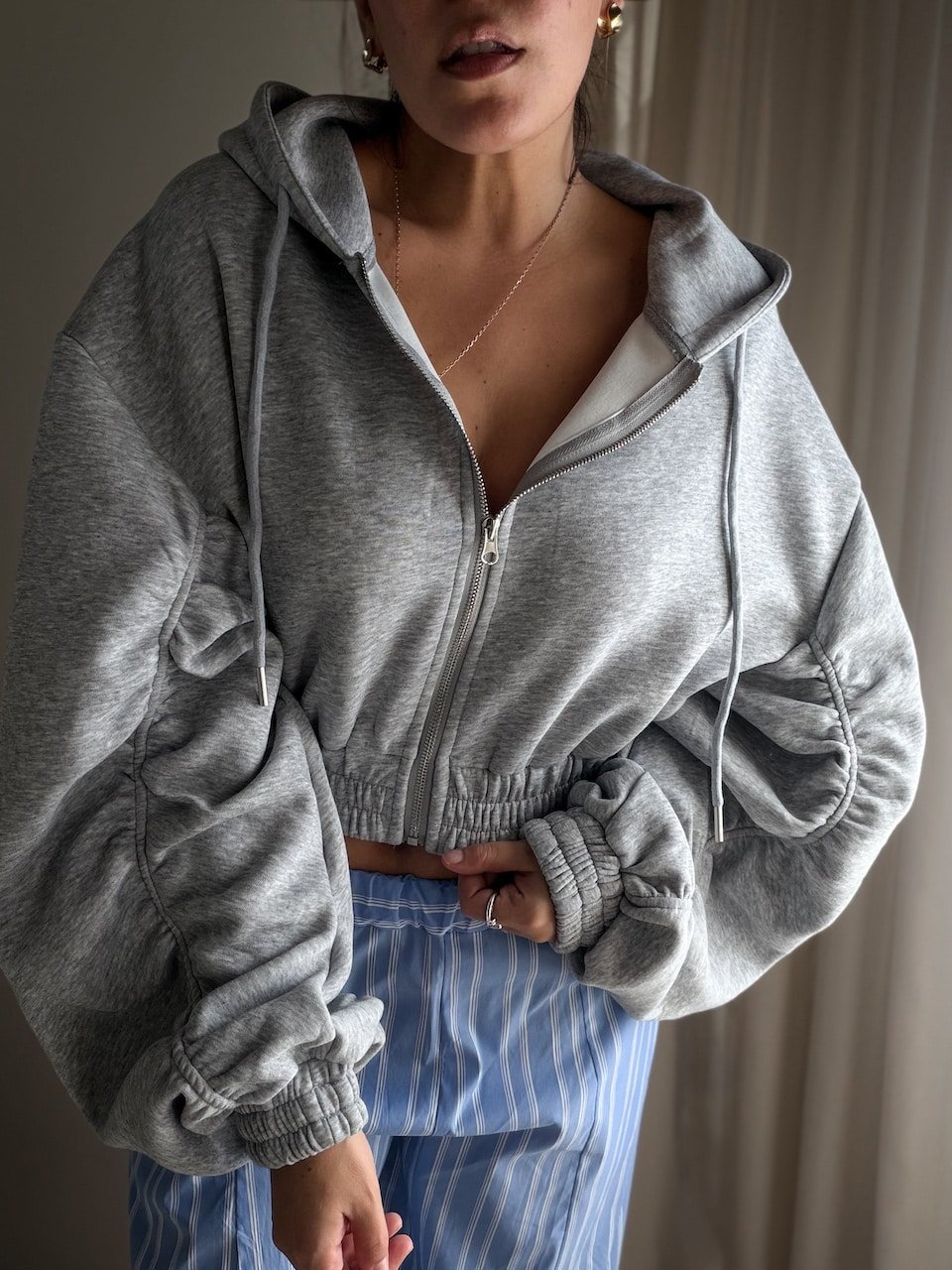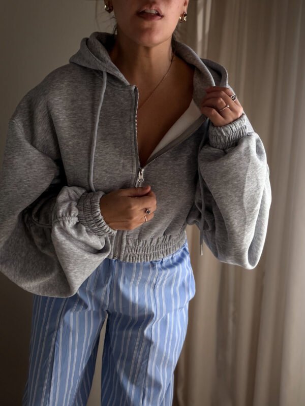 Grey Zip Oversized Hoodie