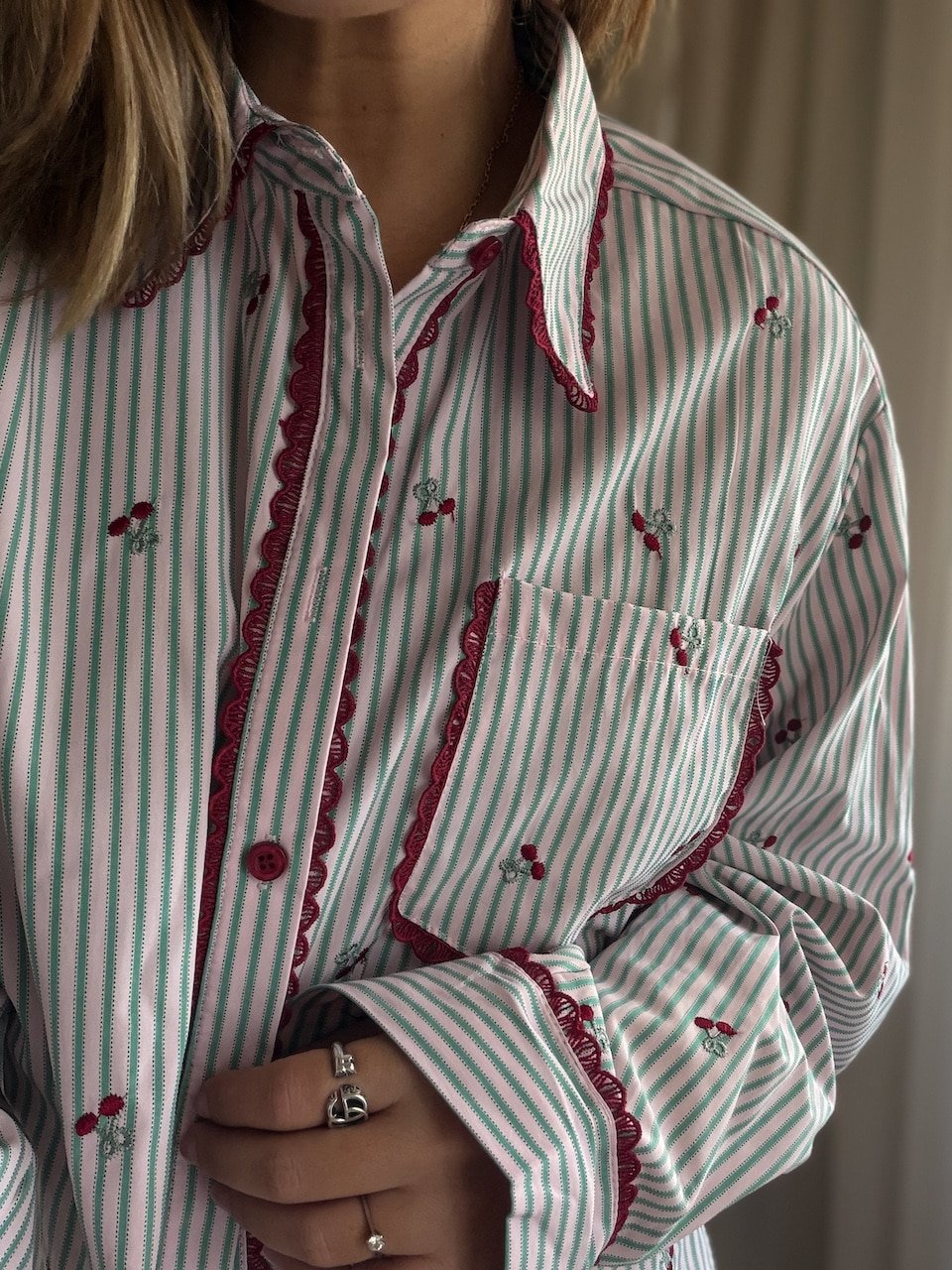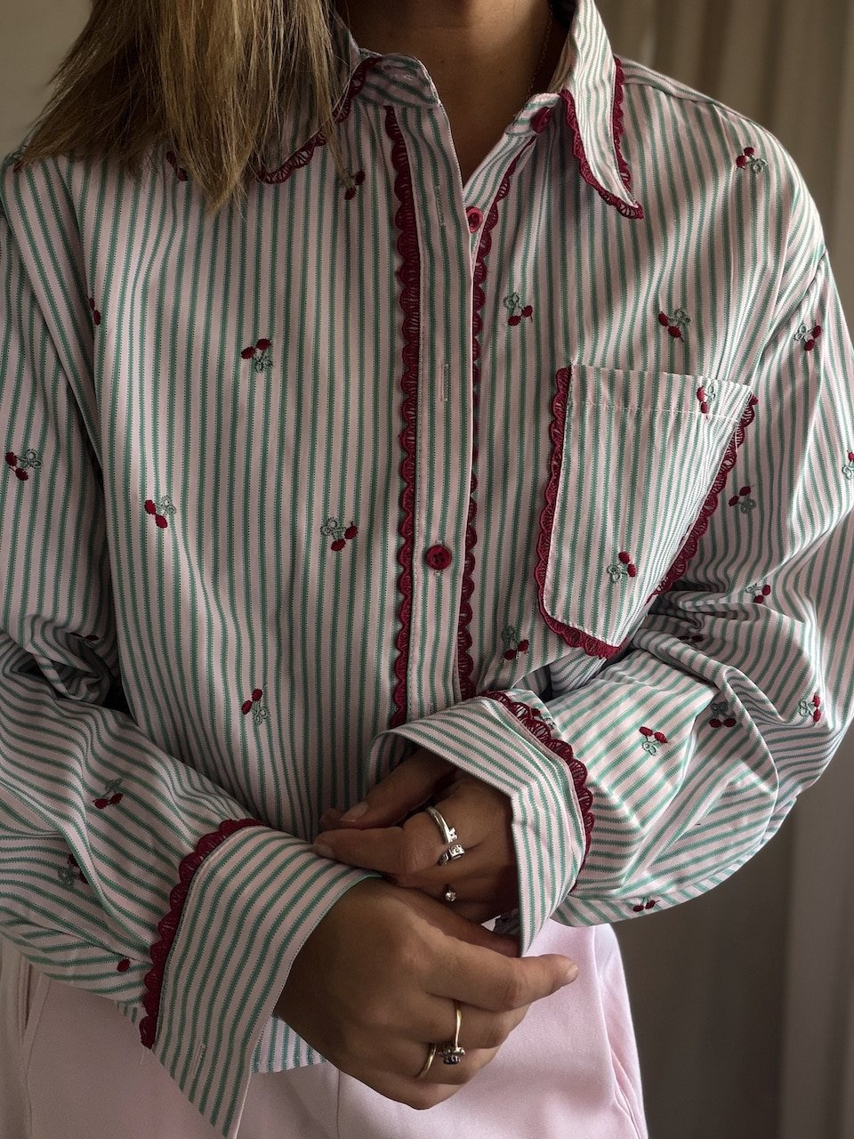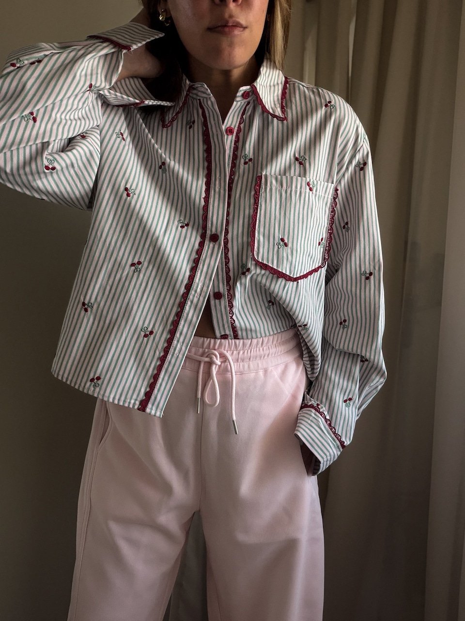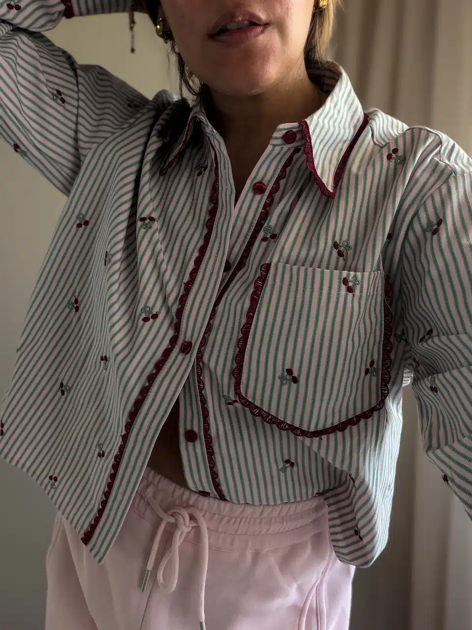 Pink Cherry Striped Cropped Sh...
