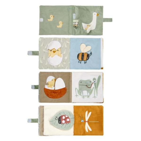 Never a dull moment with this colourful touch-and-feel activity book of Little Goose. In this booklet you will discover many of his happy friends. There are lots of different materials and activities to explore, such as a mirror, squeaky and crinkly toys. The soft booklet also has different labels that have a nice feel to them. The activities do not only stimulate the senses, they are also good for the development of baby’s hand-eye coordination.